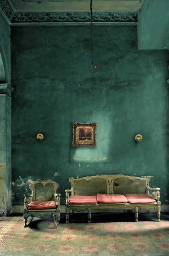 Dark Moody Landscape - Paper Print oil painting. Moonlit Night Landscape Dark Academia decor wall art. Tonalism painting