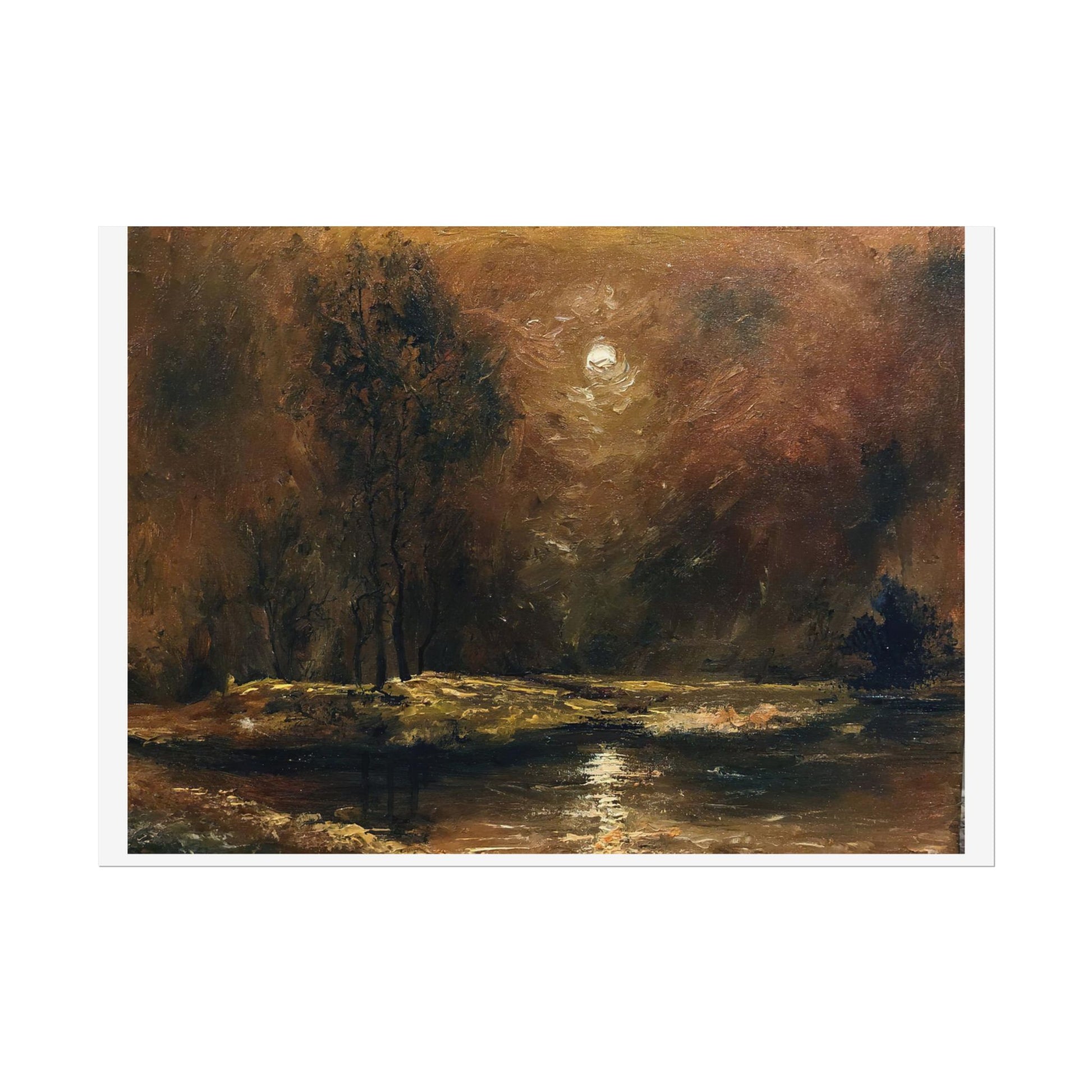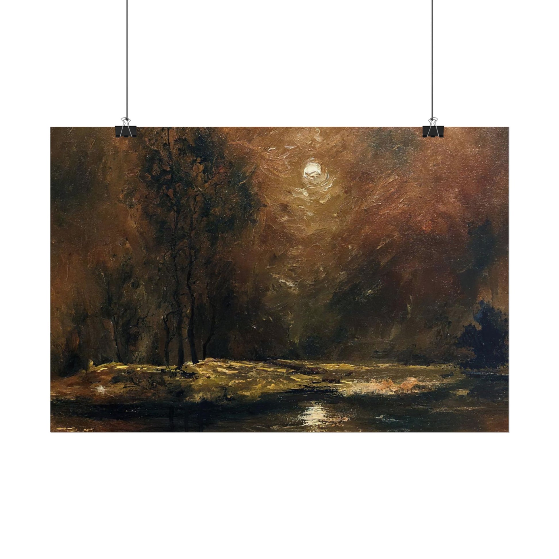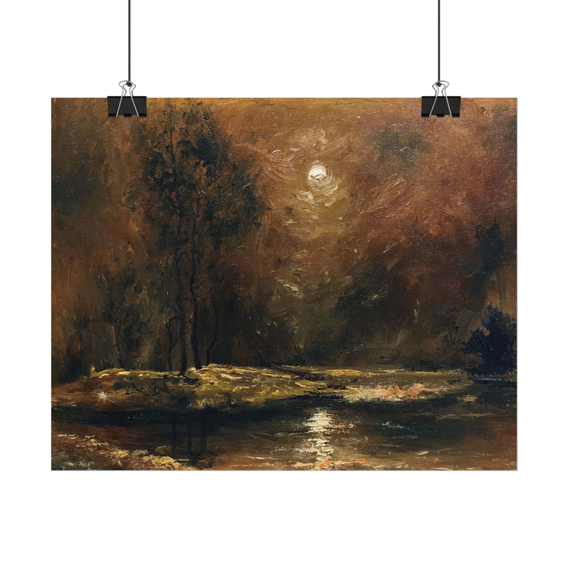 Dark Moody Landscape - Paper Print oil painting. Moonlit Night Landscape Dark Academia decor wall art. Tonalism painting