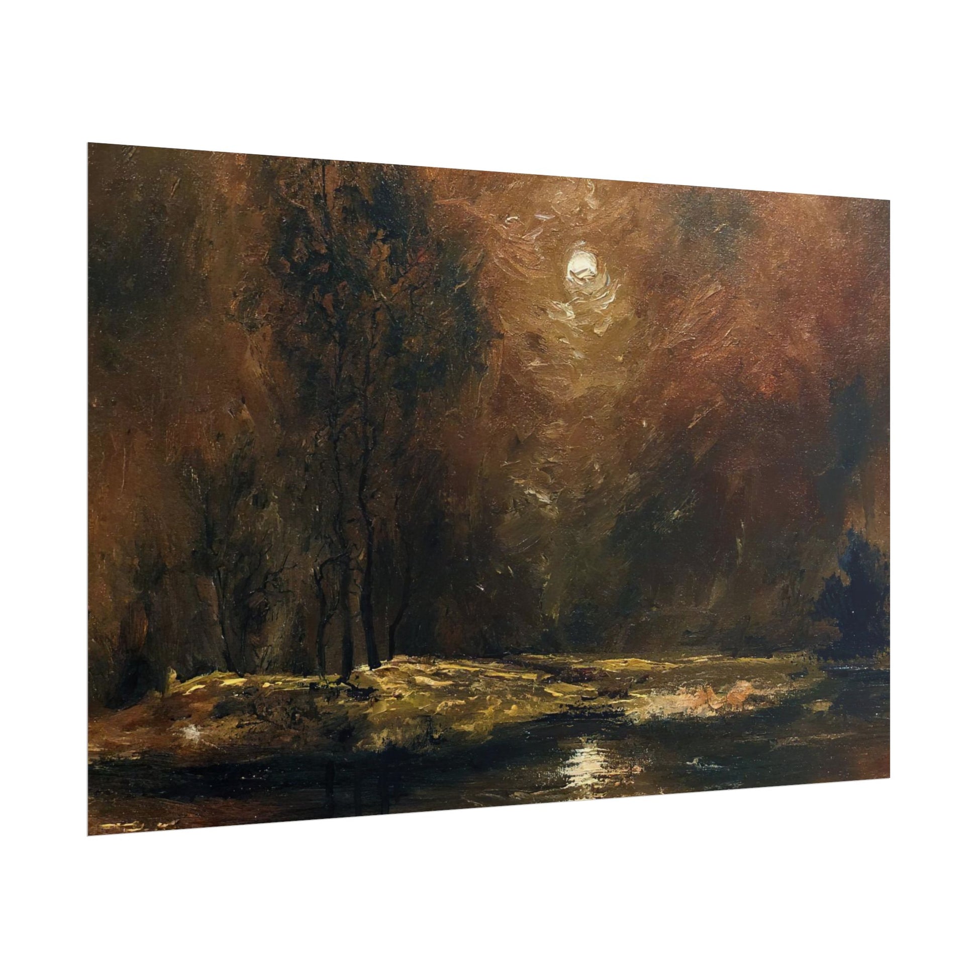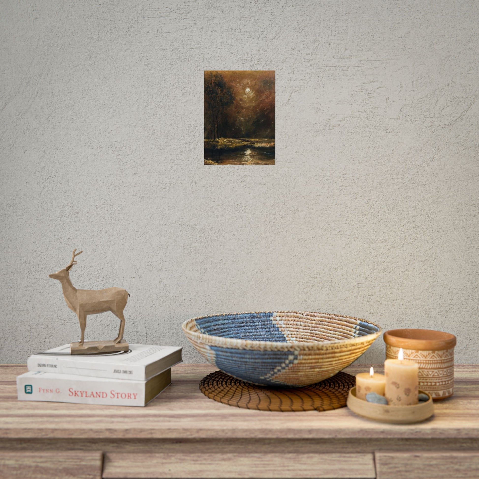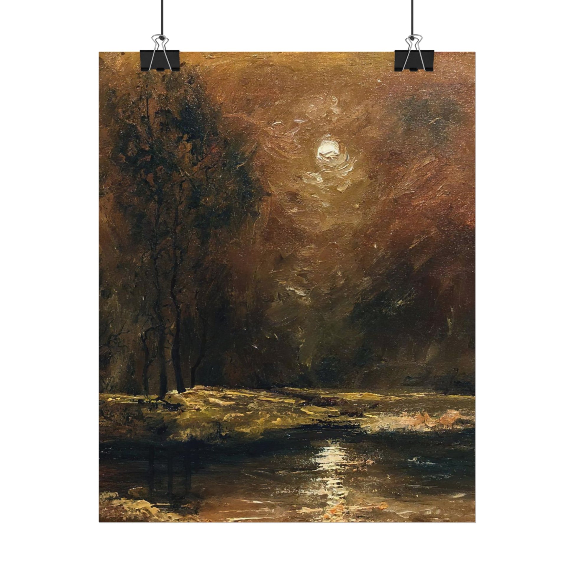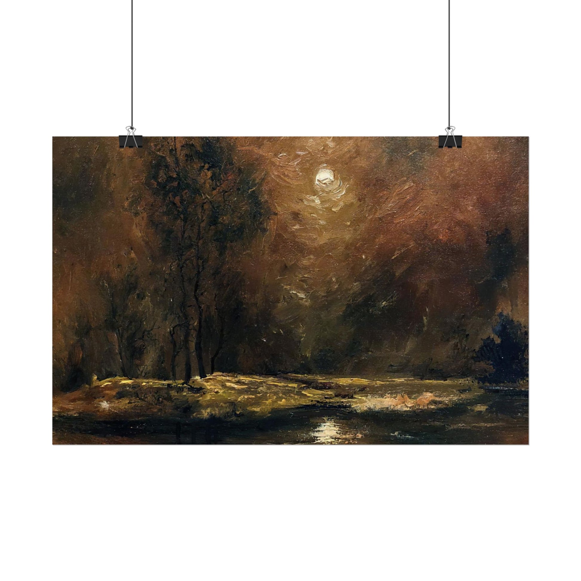 Dark Moody Landscape - Paper Print oil painting. Moonlit Night Landscape Dark Academia decor wall art. Tonalism painting