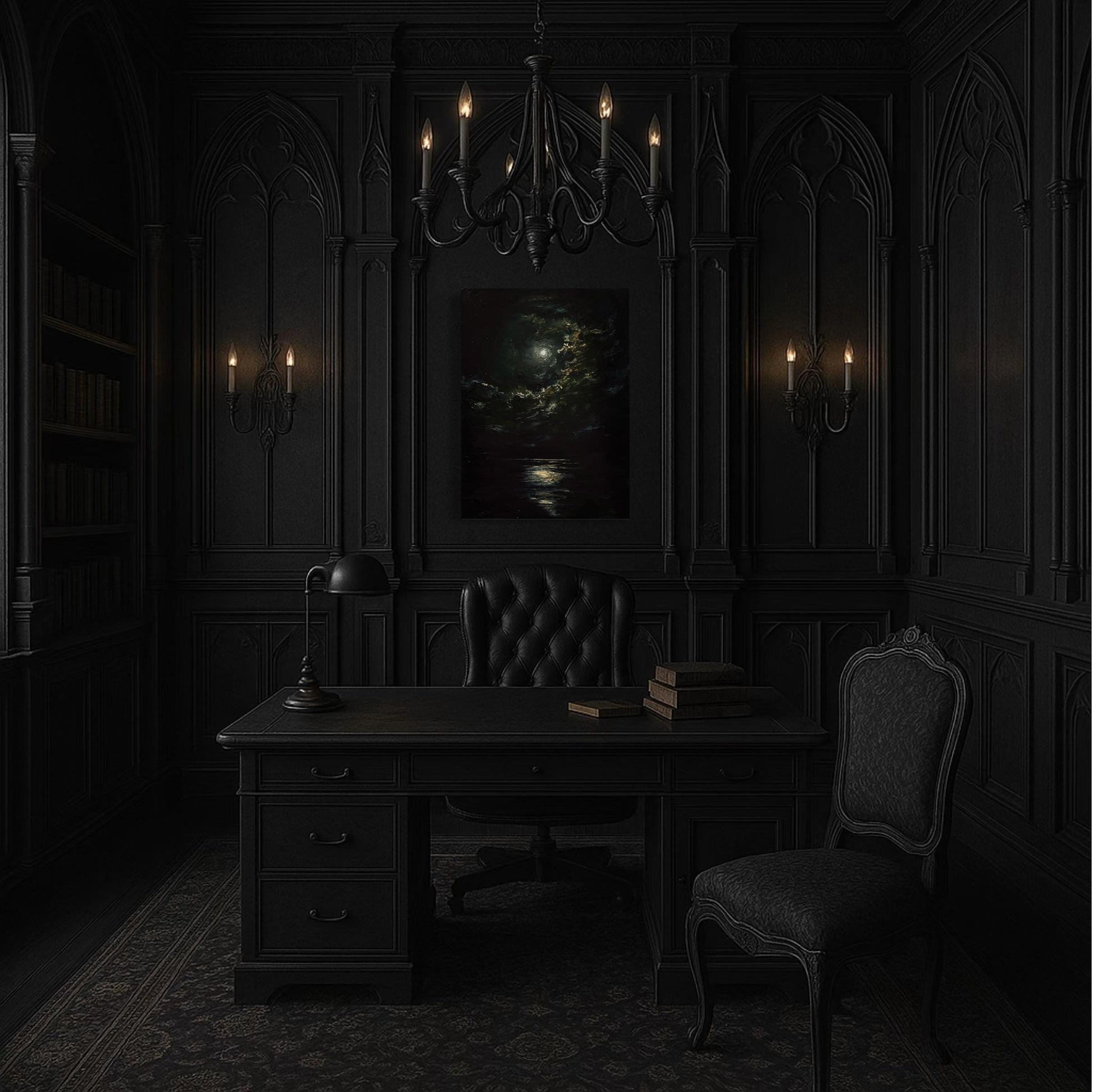 Dark Nocturne is an original oil painting that captures the captivating essence of a gothic landscape.