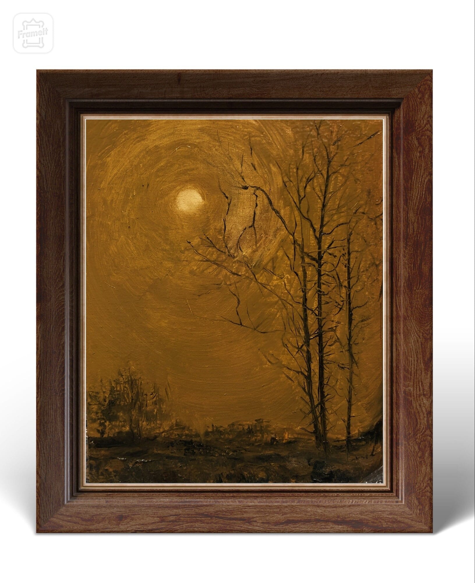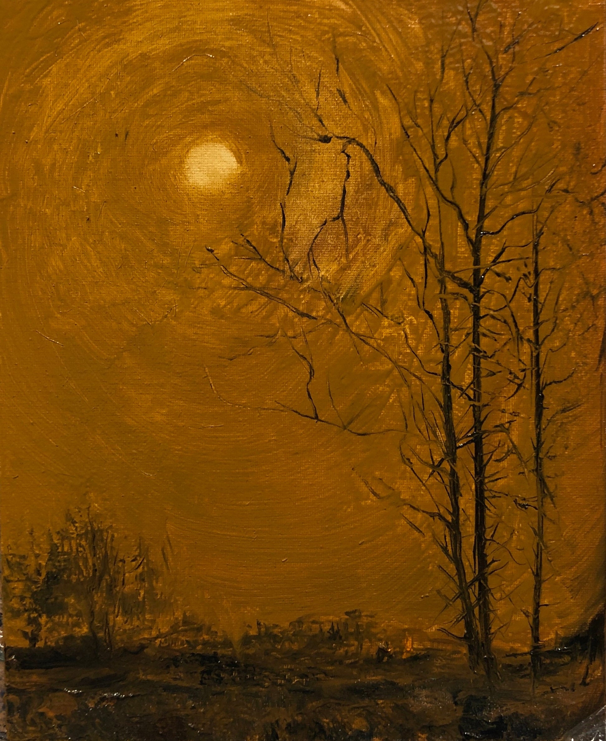 Moody Original Oil Painting Landscape on Canvas 12x9,5 inch | Dark Wall Art | Vintage Night Painting | Dark Academia Art |