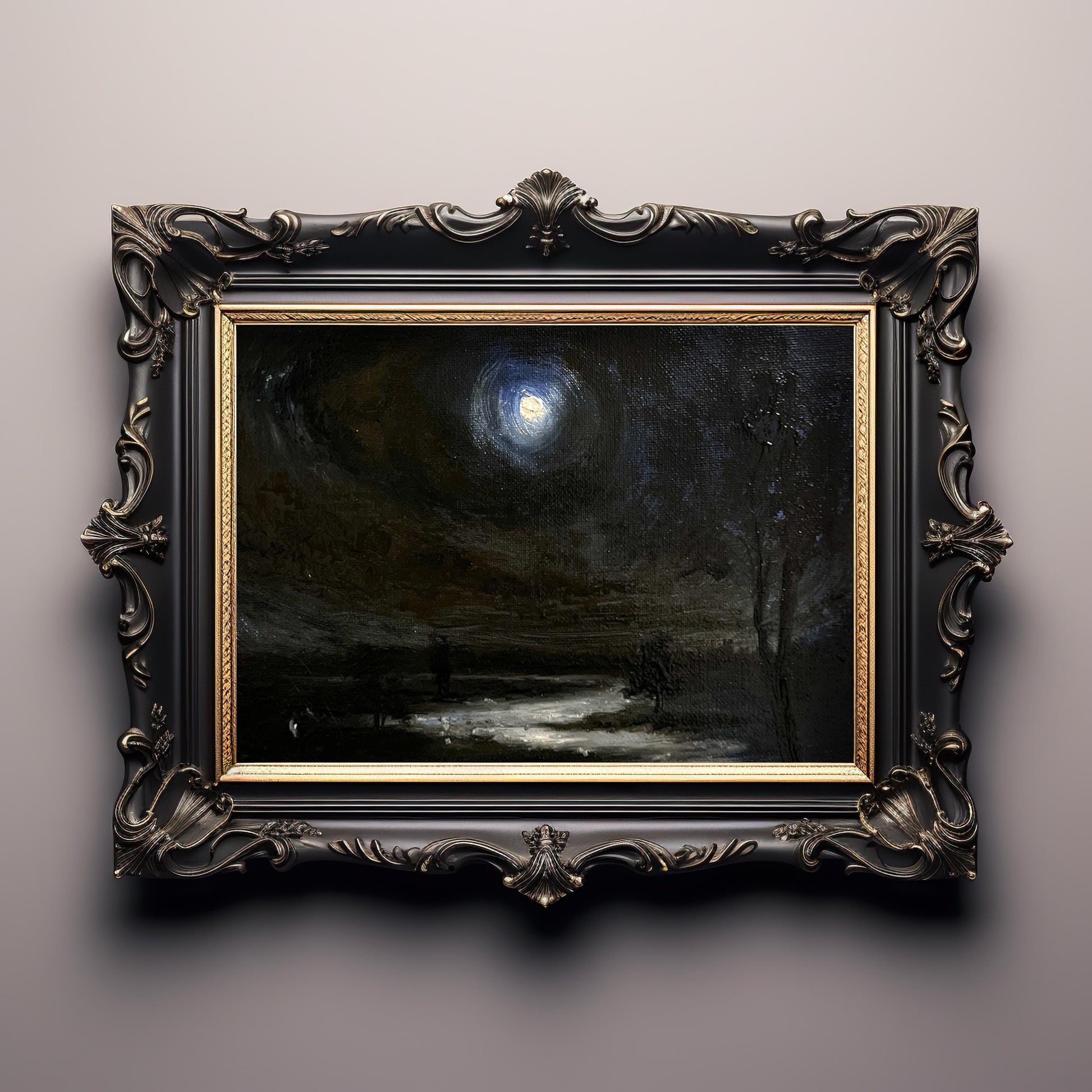 Moonlit Night Walk – Original 18x24 cm Oil Painting Landscape on Canvas | Dark Atmospheric Art for Gothic decor