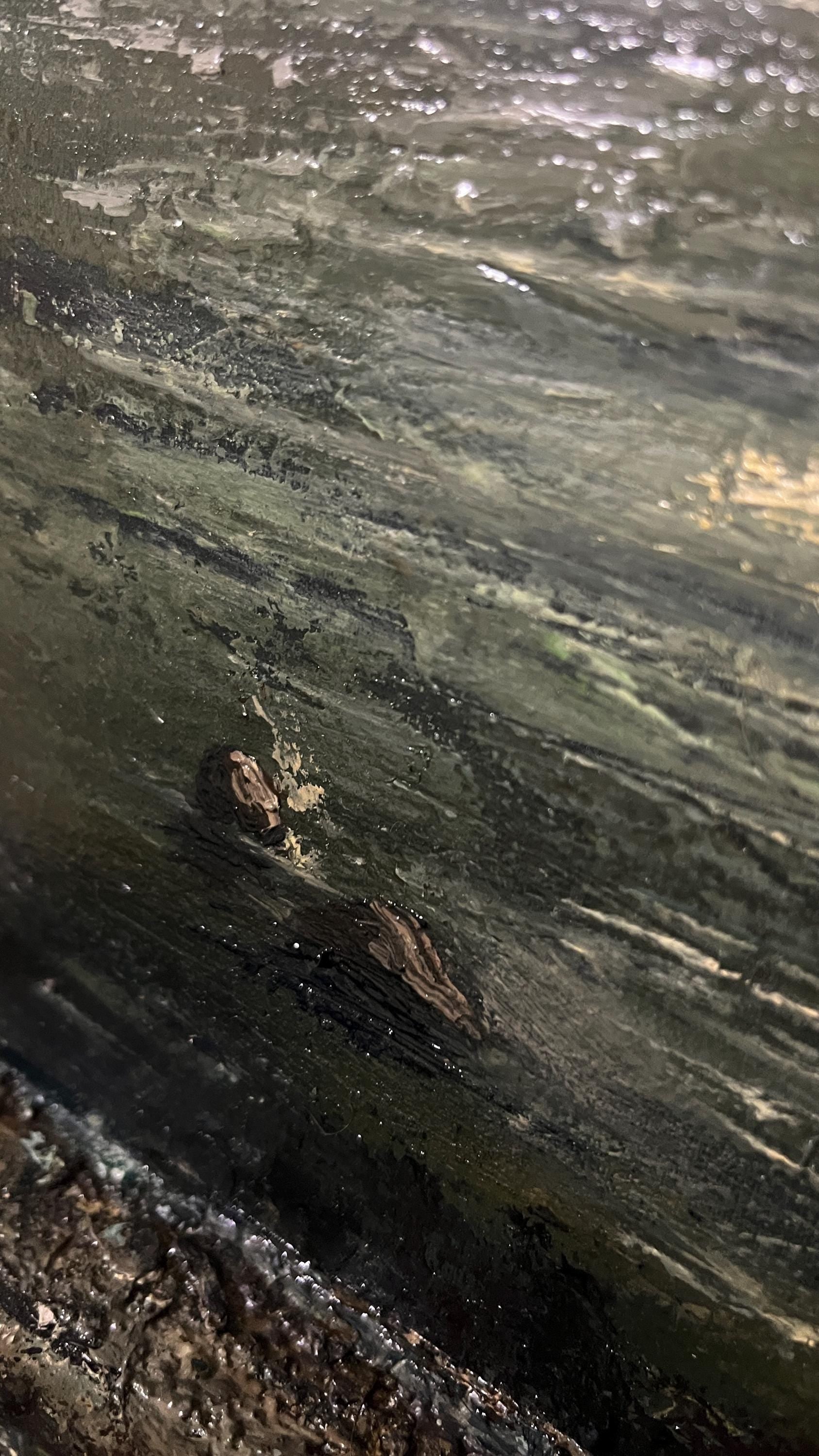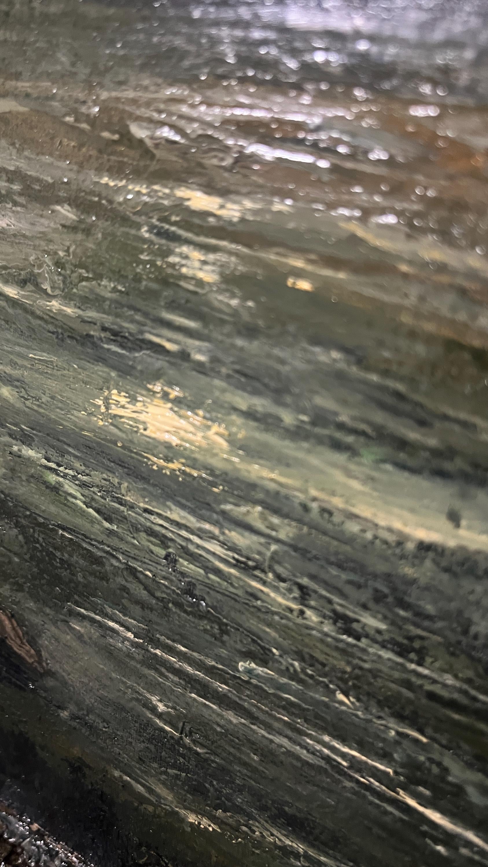 This original 40x40 cm oil painting depicts a moonlit seascape with a stormy sky and a solitary boat. Hand-painted with rich green, yellow, and earthy tones, it creates a calm and mysterious atmosphere. Ideal for small spaces, it adds a serene focal point to any room. Crafted with high-quality oils, this unique artwork offers lasting vibrancy and makes a thoughtful gift for art lovers. Unstretched and ready for framing, it brings a peaceful, contemplative mood to your home or office.