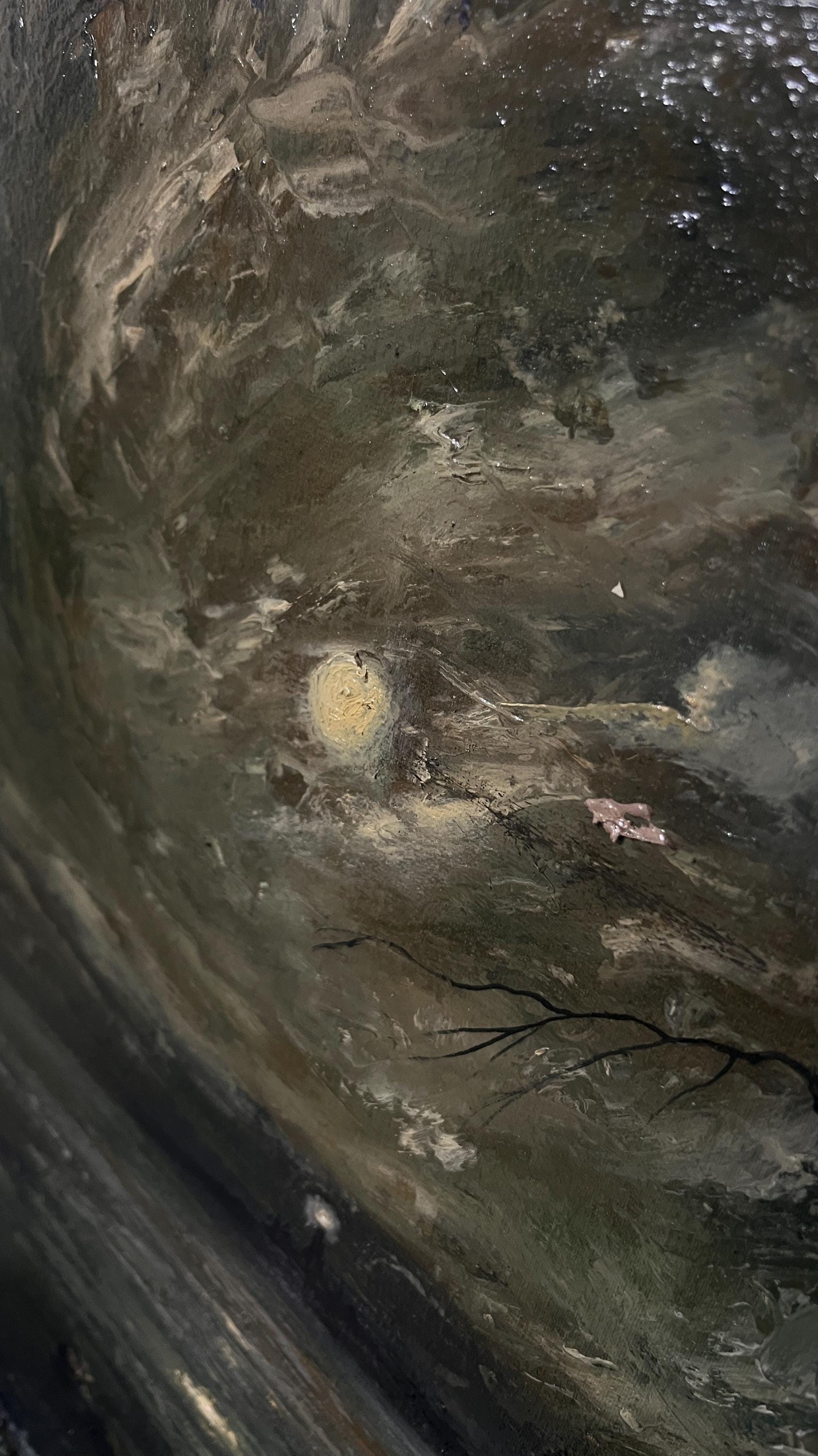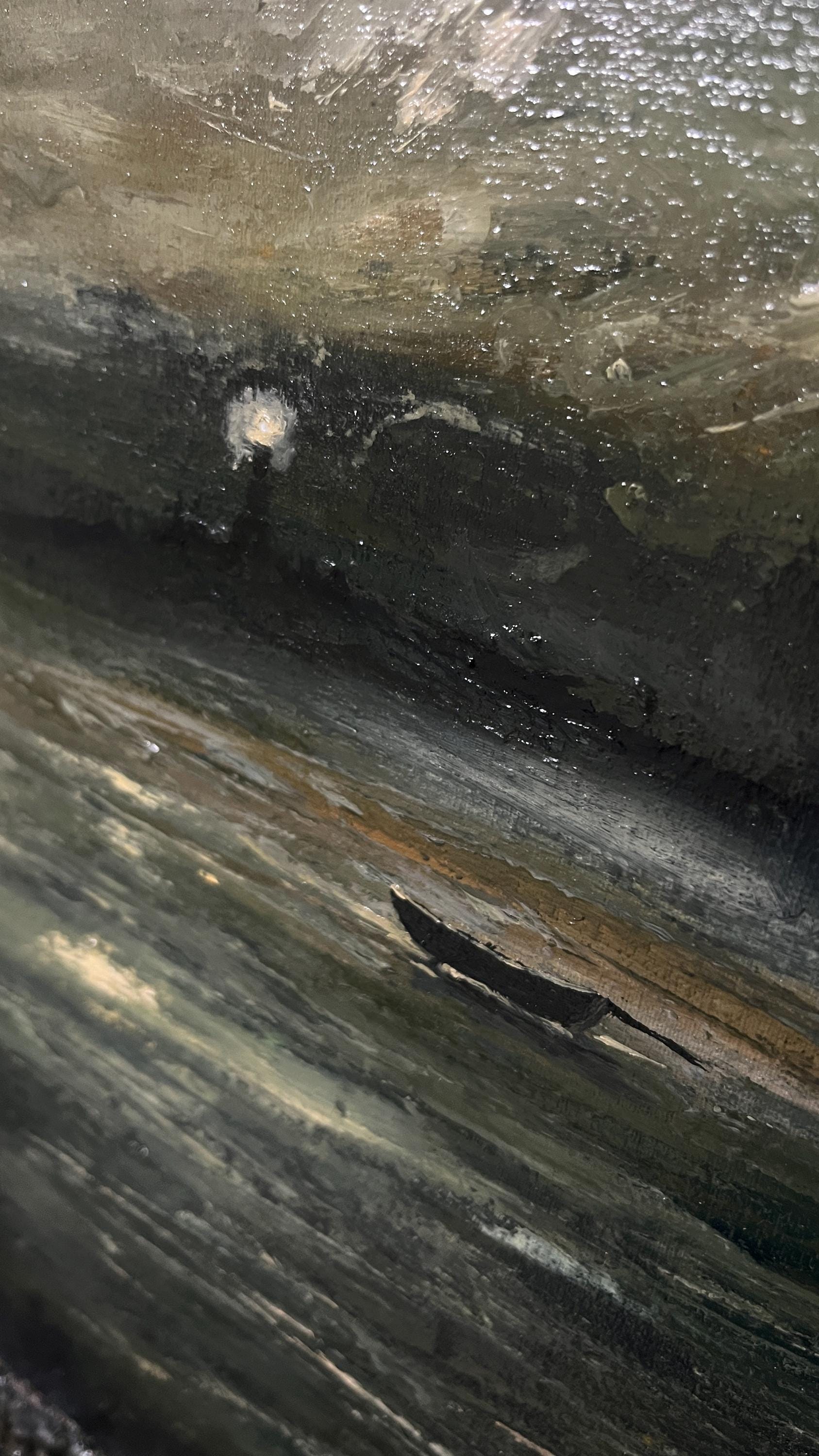 Original Oil Painting | Mystical Landscape | 40x40 cm | Moonlit Seascape Painting. Storm Sky and Lonely Boat. Gothic decor